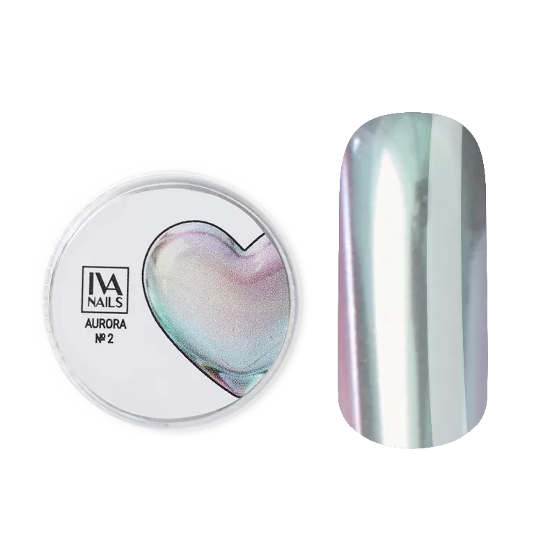 Втирка Аurora от ТМ IVA Nails имеет мельчайший пигмент, который отражает свет под разными углами и создает зеркальное покрытие с плавными цветными переливами.