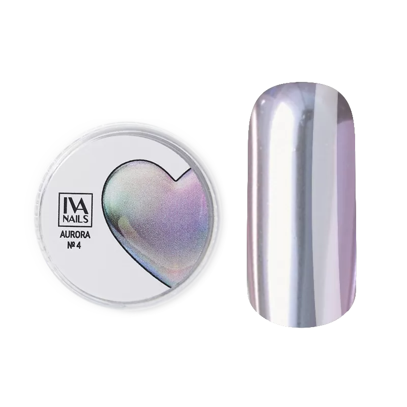 Втирка Аurora от ТМ IVA Nails имеет мельчайший пигмент, который отражает свет под разными углами и создает зеркальное покрытие с плавными цветными переливами.