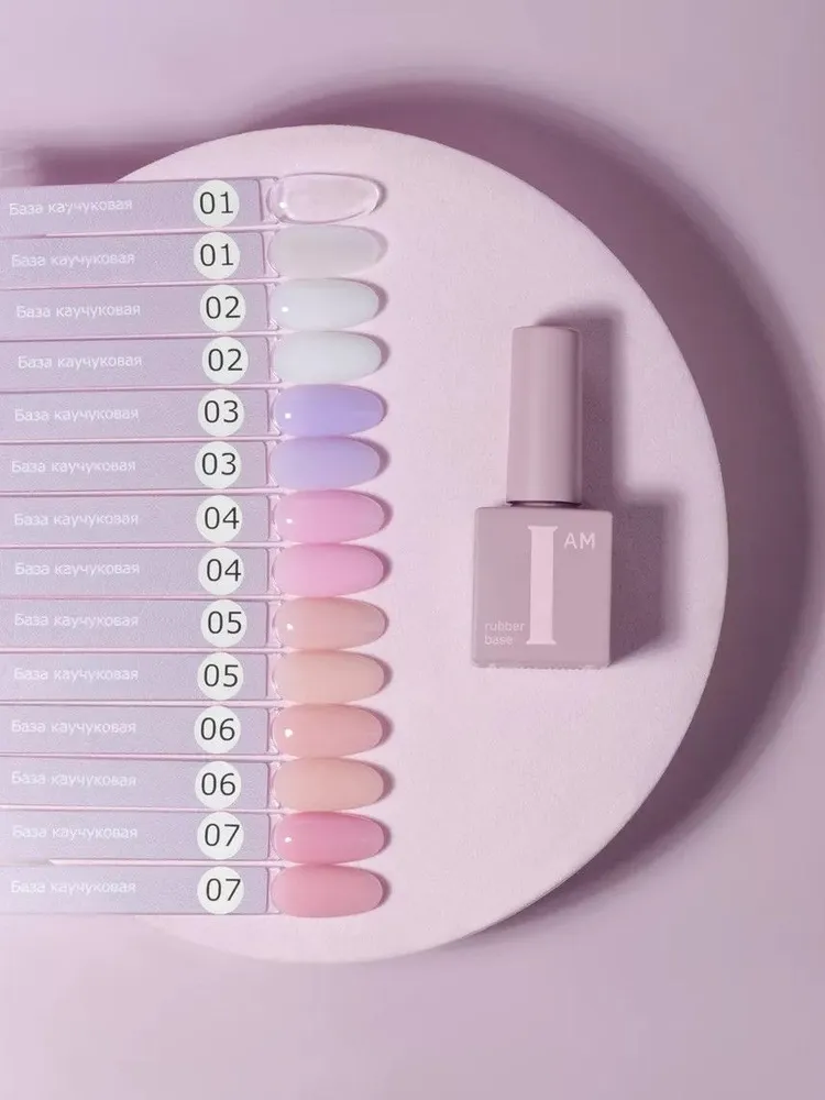 азы I AM – универсальные и надежные, идеальны для скоростной работы. Средняя жёсткость, комфортная консистенция, лёгкое выравнивание. Кисть 10 мм – прозрачная, упругая, с ровным срезом, идеальна для нанесения выравнивающего слоя. В палитре 7 цветов: 6 камуфлирующих оттенков, имеют лёгкую прозрачность. Слабокислотные pH 4,5-5, прозрачная среднекислотная база pH 4. Подходит в качестве подложки под твердые материалы, камуфлирующие и низкокислотные базы.