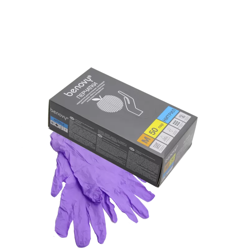 Перчатки нитриловые Benovy (сиреневые) р-р M 50 пар