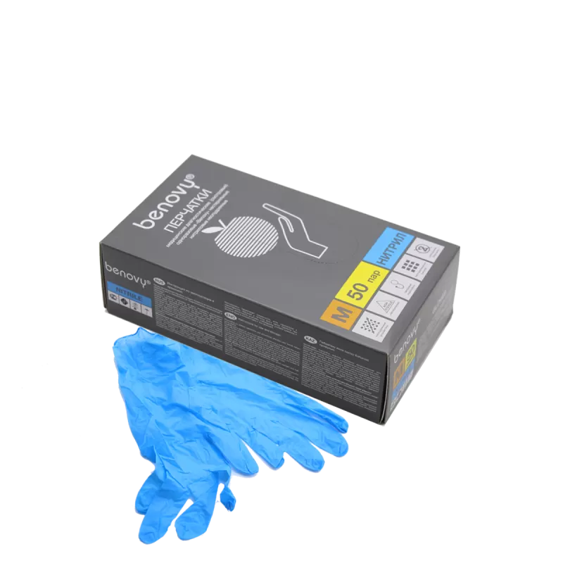 Перчатки нитриловые Benovy (голубые) р-р M 50 пар