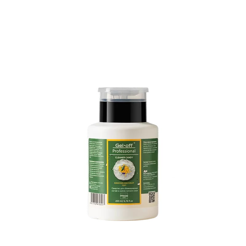 Жидкость для обезжиривания и снятия липкого слоя GEL OFF Кокосово-манговый торт (помпа) 200 мл
